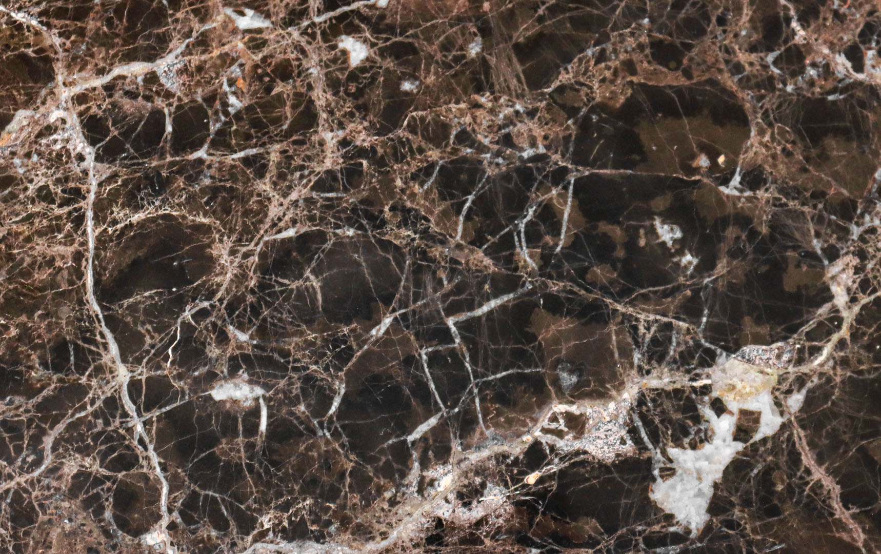 El mármol Marrón Emperador es una piedra natural de color marrón oscuro con vetas irregulares más claras, a menudo blancas o beige. Es muy apreciada por su elegancia y sofisticación, siendo popular para revestimientos interiores y exteriores.