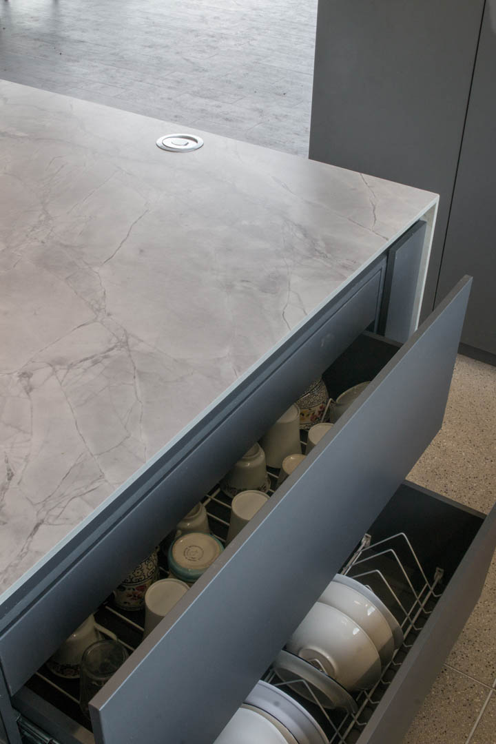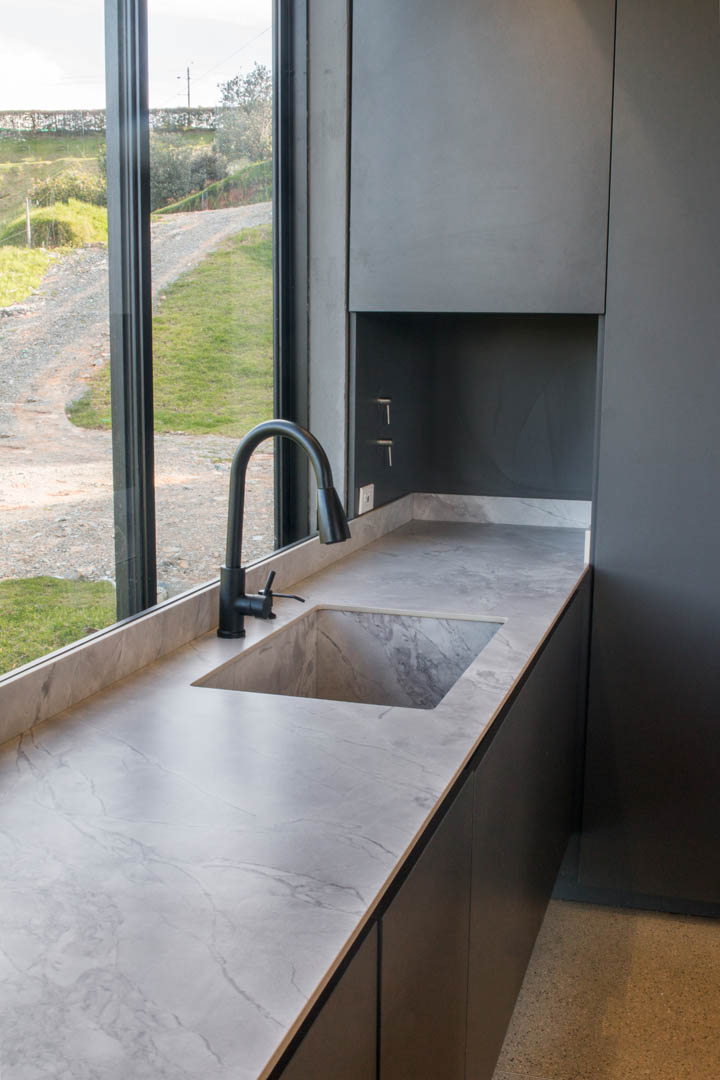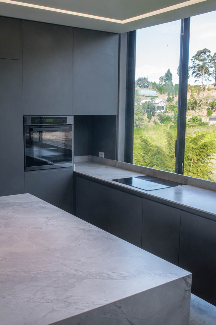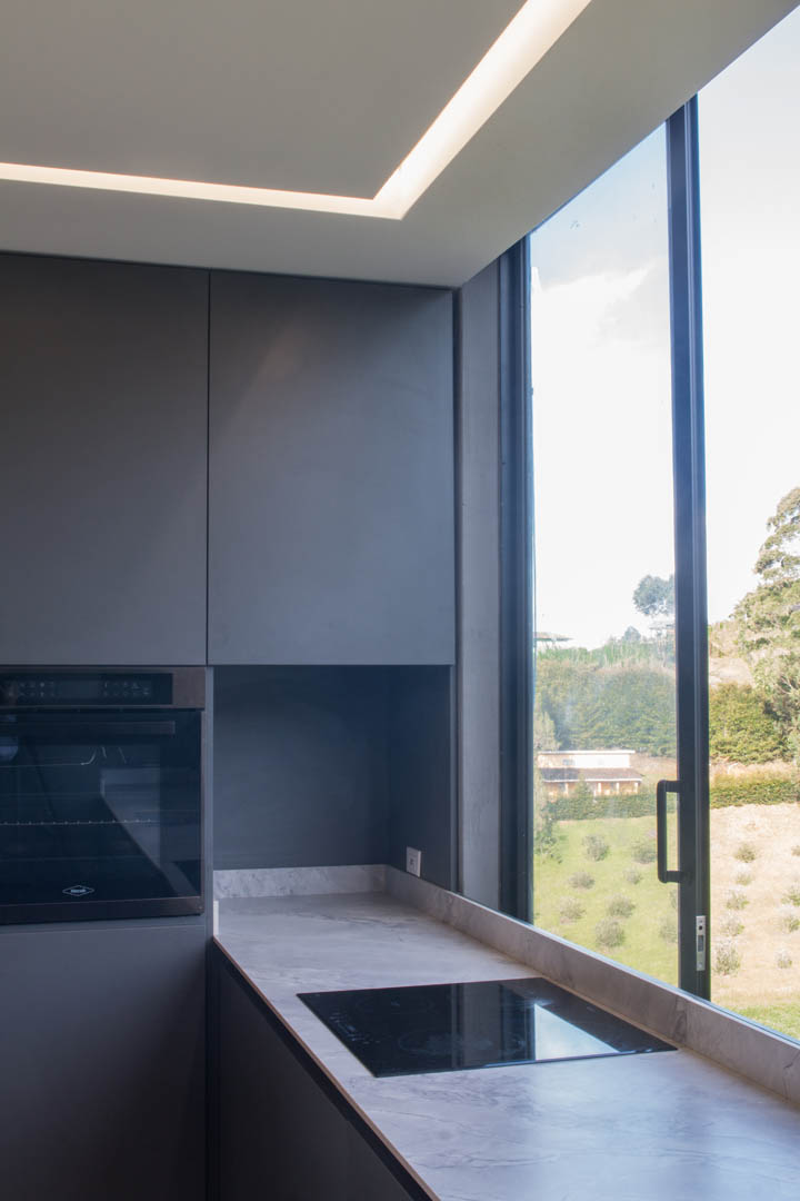 Un proyecto del Arquitecto Jhon Giraldo en el Oriente Antioqueño, el cual nos muestra como el negro y el gris siempre son una buena combinación. En este caso la cocina esta fabricada en Arklam Invisible Grey.